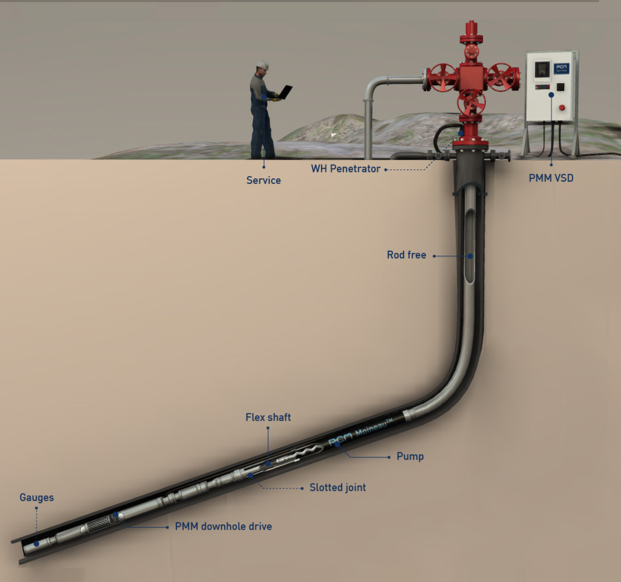 公司产品主要用于上游采气、增产环节,关注于依靠智能制造让采油更高效,针对大斜度井、单支水平井、多分支水水平井的生产难题,通过顶驱螺杆泵、电潜螺杆泵、潜油隔膜泵三种主要系统,解决杆管偏磨,增加下泵深度,根据油井不同的工况条件,提出适合的解决方案,提高采气效率,延长检泵周期,降低生成风险,实现油田降本增效。